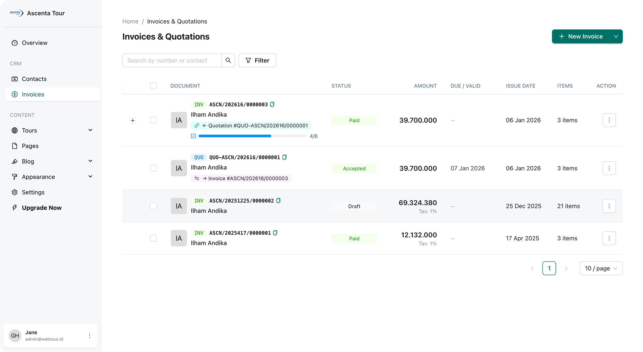 No more copy-paste templates or unprofessional PDFs. Instant quotations & invoices with clean PDF export.